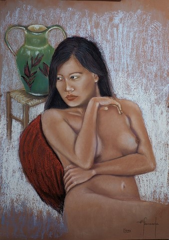 pastel sec avec cadre sur papier avec enduit perso 360gr sans acide 70x50