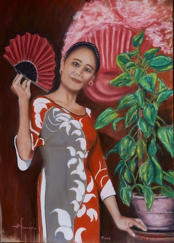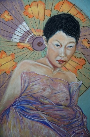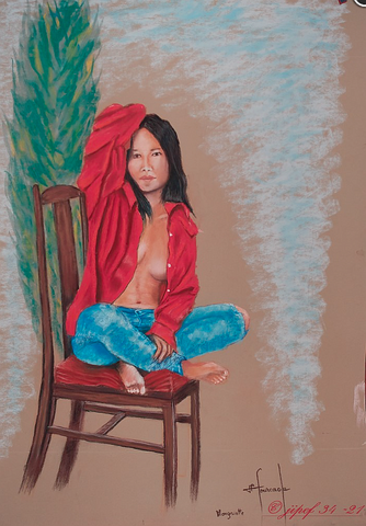 Première création à la gouache *Chemin de l'école en automne 1957*